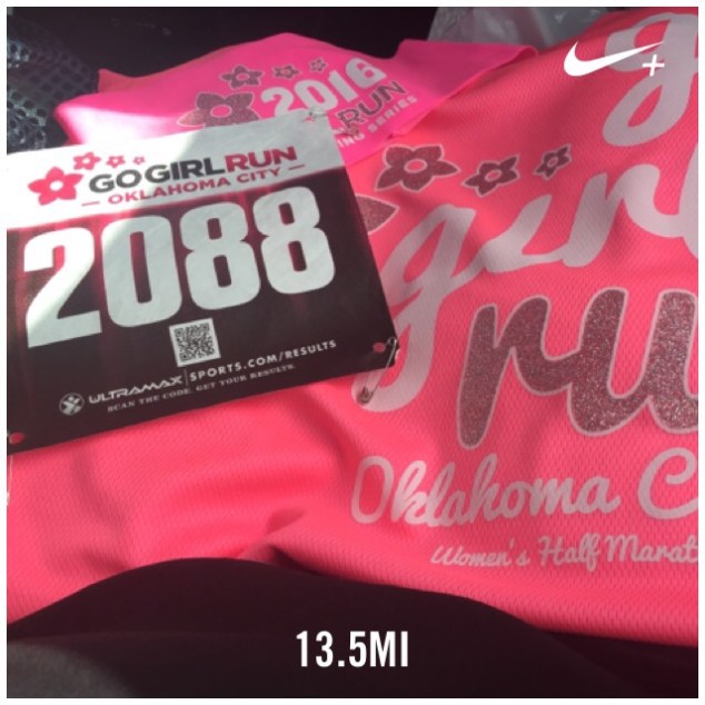 The Oklahoma City Go Girl half marathon; I had a great 6 miles.. Then I got a horrible pain in my calf I had to sit for a few minutes, after massaging my calf for a bit I got back up and jog/walked the last 7 miles and honestly it was horrible I wanted to quit so bad, but I finished! I feel like I need to run another half to prove to myself I can!! The Monday after the run I went to the Dr to have it checked out. And the Dr said I had Calf Strain, caused by not stretching and warming up the right way. The following week I rested and took it easy, then eased in with a mile and a lot of stretching. I’m a lot better I just need to stretch, stretch, stretch. I haven’t run more than 3 miles since this half almost a month ago. I need to sign up for a run and then I’ll have some motivation!